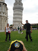 Y como no en la Piazza dei Miracoli la Torre de Pisa. Sirviendo de fondo de la foto a cuantos visitantes quieren dar fe de que han llegado y la han empujado